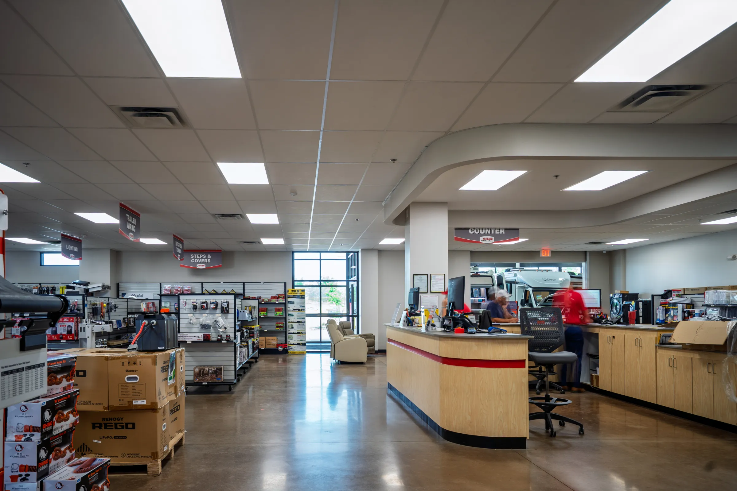 The Charles Morgan Group partnered with McClain’s Longhorn RV to deliver a dealership that meets the demands of a modern, high-volume RV operation. Designed to handle an expansive inventory and support an elevated customer journey, the project includes a large-scale showroom, spacious sales offices, a customer retail center, and a fully equipped service facility capable of servicing a full range of RV models.